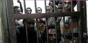Para aktivis yang ditahan di Polres Merauke. [Foto: Facebook Marinus Yaung]