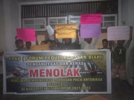 Koordinator aksi demo di Jayapura, Maichel Awom, Amd.,IP menegaskan bahwa aksi penolakan rencana pembangunan bandara antariksa perna disuarakan oleh kelompok intelektual Biak pada tahun 2006-2007, juga penolakan pada tahun 2016-2017, maka secara tegas forum peduli kawasa Byak Papua menolak pembagunan bandara antariksa di Biak.