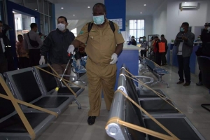 SORONG, JAGAPAPUA.COM - Setelah Satgas COVID-19 Kabupaten Sorong melakukan penyemprotan disinfektan di KM.Kalabia yang baru tiba dari Fak-Fak di Pelabuhan ASDP SP 3 Hari Minggu lalu, langkah nyata lainnya adalah melakukan penyemprotan disinfektan pada fasilitas umum yang ada di Kabupaten Sorong.