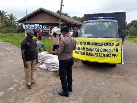 Polres Mappi saat membagikan beras pada warga pada Rabu, 17 Juni 2020