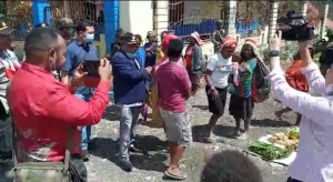 Bupati Intan Jaya, Natalis Tabuni saat mengunjungi mama Papua di Pasar Sugapa, Intan Jaya. [Foto: Dok. Humas Polri]