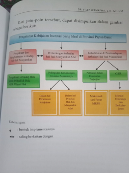Gambaran umum dari isi buku ini mencakup beberapa poin penting terkait pengaturan kebijakan investasi yang ideal di Provinsi Papua Barat. Poin-poin tersebut antara lain mensyaratkan adanya Pengakuan dan Penghormatan terhadap hak-hak masyarakat, Perlindungan terhadap Hak-hak Masyarakat Adat dan Keterlibatan serta Pemberdayaan terhadap Hak-hak Masyarakat Adat.