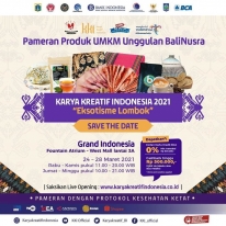 JAGAPAPUA.COM - Bank Indonesia (BI) menggelar Pameran Produk Unggulan UMKM BaliNusra (Bali, Nusa Tenggara) di Mal Grand Indonesia, Jakarta, pada 24-28 Maret 2021. Sebanyak 20 UMKM binaan BI terlibat mulai dari UMKM penghasil kain, kopi dan teh, serta produk kriya khas Nusa Tenggara dan Bali. Kegiatan ini merupakan rangkaian dari Karya Kreatif Indonesia (KKI) Seri 1 dengan tema #EksotismeLombok, sebagai wujud nyata dukungan termasuk dalam rangka peran BI sebagai movement manager dalam Gerakan Nasional Bangga Buatan Indonesia (GBBI) dan Bangga Berwisata #DiIndonesiaAja (GBWI).