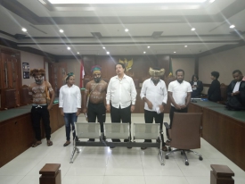 JAKARTA,JAGAPAPUA.COM-Berselang lama menunggu akhirnya Hakim dan Jaksa Pengadilan Negeri Jakarta Pusat memasuki ruangan persidangan. Selepas Ambrosius Mulait dan Dano Tabuni tanggalkan Koteka.