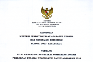 JAKARTA, JAGAPAPUA.COM - Menteri Pendayagunaan Aparatur Negara dan Reformasi Birokrasi (PANRB) Tjahjo Kumolo menerbitkan Keputusan Menteri PANRB Nomor 1023 Tahun 2021 tentang Nilai Ambang Batas Seleksi Kompetensi Dasar Pengadaan Pegawai Negeri Sipil Tahun Anggaran 2021. Standar penilaian dalam bentuk nilai ambang batas atau passing grade dalam seleksi pegawai negeri sipil (PNS) diperlukan untuk menjamin terpenuhinya kompetensi dasar setiap PNS.