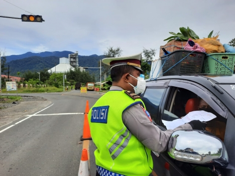 MANOKWARI, JAGAPAPUA.COM - Tim Gabungan Anggota Polda Papua Barat dan Polres Manokwari melakukan penyekatan lalu lintas di sejumlah jalan di Manokwari dalam rangka pelaksanaan Pemberlakuan Pembatasan Kegiatan Masyarakat (PPKM) Level 3.