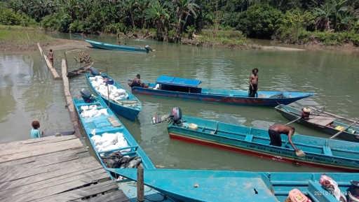 Miriyam Waney selaku pemilik pekerjaan mengatakan, kendala yang dihadapi dalam pekerjaan di kampung Wagen adalah jarak tempuh dan distribusi material dasar yang semuanya harus diangkut menggunakan perahu Lombout.