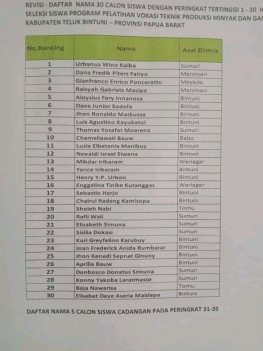 “Ini ada apa padahal pusat pelatihan ini hadir untuk kembangkan SDM tujuh suku di Bintuni dan Papua Barat pada umumnya. Jadi tolong ditambah kuota perempuan ya. Ini imbauan saya dan harus dijalankan karena dalam persyaratan ada diminta pengantar dari kami lembaga tujuh suku yang bernaung di bawah Kesbangpol. Harap dipahami baik,” tegasnya.