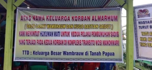 “Oleh sebab itu atas nama Masyarakat Adat Papua Wilayah III Doberay Papua Barat, kami Desak Kejaksaan Tinggi Papua Barat dan Pengadilan Negeri Manokwari untuk Menghukum Mati Pelaku Pembunuhan Terhadap Kedua Anak Asli Papua ini,” tambahnya.