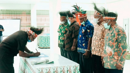 Ia juga menyampaikan permohonan maaf karena Bapak Bupati berhalangan hadir namun tidak mengurangi semangat dan antusiasme masyarakat. Acara selanjutnya dilakukan penandatanganan berita acara yang disaksikan oleh pemerintah daerah Bintuni dan tamu undangan.