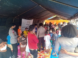 “Dalam kegiatan ini kami berupaya membuat anak selalu ceria dan tidak mengingat kebakaran yang menjadi trauma dalam insiden tersebut. Pada kegiatan ini juga kami membawa Polwan Papua Barat, tim kesehatan dari rumah sakit Bhayangkara sekaligus memeriksa kesehatan anak-anak di tenda pengungsian yang kena batuk pilek. Tim trauma healing juga mengadakan lomba-lomba agar anak-anak mendapatkan hadiah. Dan agar mereka mengerti prokes kita memberikan masker kepada anak-anak,” jelasnya.