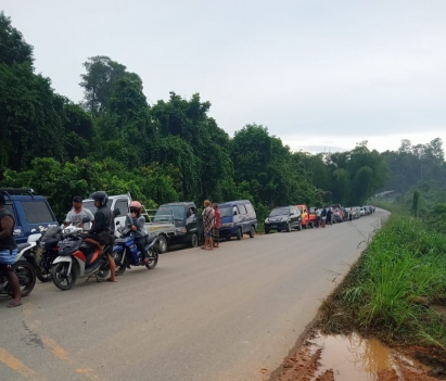 BINTUNI, JAGAPAPUA.COM - Antrean panjang kendaraan baik roda dua maupun roda empat nampak mengular di SPBU Bintuni Timur, Teluk Bintuni, Papua Barat hari ini, Kamis (11/11). Menurut salah seorang warga setempat, antrean panjang ini terjadi disebabkan harga BBM di pengecer melambung tinggi hingga per liternya mencapai Rp 30.000 untuk jenis premium. Kenaikan harga ini disebut akibat sulitnya mendapatkan BBM.