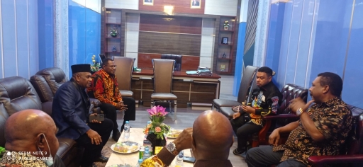 RAJA AMPAT, JAGAPAPUA.COM - Wakil Ketua I Komite I DPD Republik Indonesia Dr. Filep Wamafma, SH., M.Hum disambut hangat Wakil Bupati Raja Ampat, Orideko Burdam dalam agenda silaturahmi sembari menikmati segelas kopi bersama di ruang kerja Wabup di kantor Bupati Waisai Raja Ampat, (4/12).