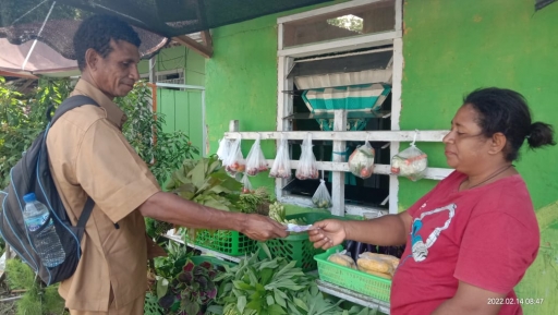 Usaha Pondok sayuran segar yang dikelola oleh mama-mama Papua ini banyak tersebar di pinggiran jalan utama. Namun mama Papua yang satu ini memilih membuka pondok sayuran di Kompleks Tahiti sekitar 20 meter dari jalan utama. Ia berusaha mendekatkan layanan sayuran segar untuk keluarga di sekitar Kompleks dimana dirinya tinggal.