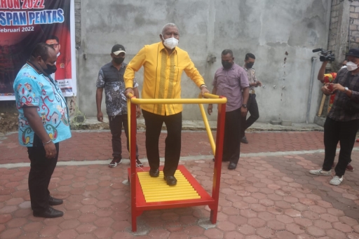 “Diharapkan untuk bisa menjaga dan merawat alat outdoor ini dan dipergunakan sebagai sarana olahraga yang bermanfaat bagi kesehatan,” pesan Robert Kardinal saat menggunting pita.