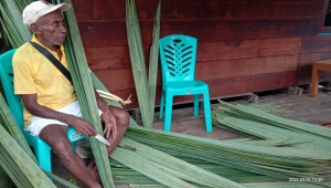 BINTUNI, JAGAPAPUA.COM - Seorang pengrajin atap daun nipah Daniel Wekaburi menerima pesanan atap sebanyak 250 lembar atap bengkawan daun nipah. Daun pohon nipah ini banyak terdapat di pesisir Teluk Bintuni. Daun pohon nipah dikenal mempunyai banyak fungsi, salah satunya adalah digunakan sebagai atap rumah.