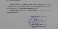 JAKARTA,JAGAPAPUA.COM- Rumah Sakit Penyakit Infeksi (RSPI) Sulianti Saroso, Sunter, Jakarta Utara, merilis surat keterangan hasil uji laboratorium terkait dugaan pasien virus Corona asal Negeri Cina. Pasien merupakan Warga Negara Indonesia (WNI) yang baru